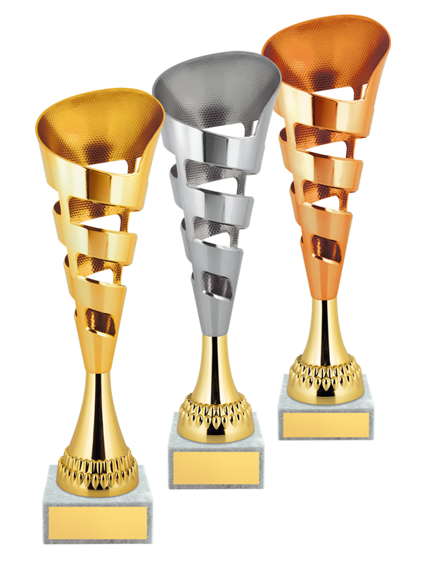 Комплект из 3-х кубков с пластиковыми чашами на мраморных основаниях.Высота кубков: 33,34,36 см.